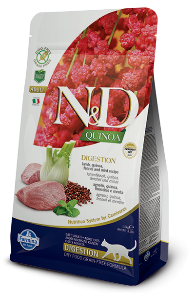 свежая баранина без костей (20%), дегидратированное мясо ягненка (18%), гороховый крахмал, куриный жир, гидролизат рыбного белка, экстракт семян киноа (8%), дегидратированные цельные яйца, льняное семя, дегидратированная сельдь, рыбий жир, сушеный фенхель (2,5%), сушеная мята (2,5%), инулин (0,6%), фруктоолигосахариды (0,6%), маннанолигосахариды (дрожжевой экстракт) (0,6%), подорожник, хлорид калия, сухие пивные дрожжи, хлорид натрия, сульфат кальция дигидрат, глюкозамин, хондроитин сульфат, экстракт календулы (источник лютеина).