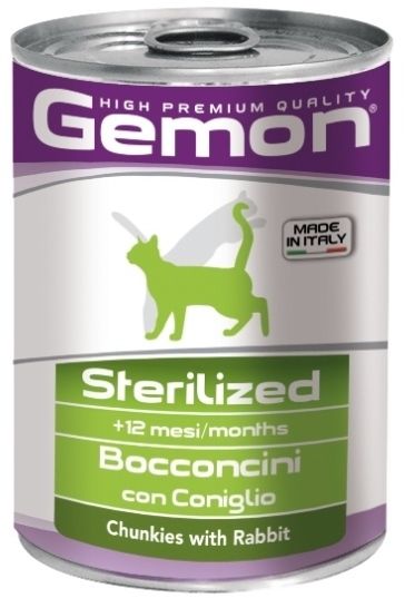 Полноценный, сбалансированный консервированный корм с кусочками кролика для кастрированных котов и стерилизованных кошек, а также для склонных к набору лишнего веса.