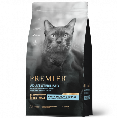 » Premier Cat Salmon&Turkey STERILISED (Свежее филе лосося с индейкой для кошек.)
