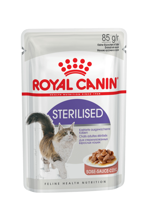 ROYAL CANIN® Sterilised в соусе специально разработан с учетом потребностей взрослых стерилизованных кошек. Благодаря контролируемому уровню калорийности и умеренному содержанию жиров ROYAL CANIN® Sterilised в соусе помогает кошке не набирать избыточный вес (при условии, что при кормлении не превышается рекомендуемый объем порций).
