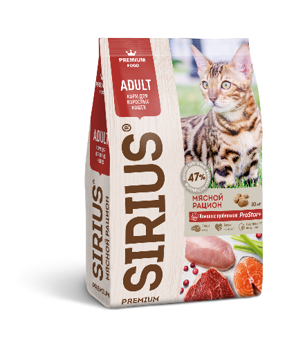Дегидрированное мясо (птица 25% говядина 4%, лосось 4 %), кукуруза, пшеница, волокна диетические, жир куриный, мука говяжья, мука рыбная (лосось), гидролизованные мясные белки, дрожжи сухие, лизин, метионин, таурин, жир лососевый 0,8%, пробиотический комплекс ProStor Bio Care (Bacillus subtillis, Bacillus licheniformis, автолизат пивных дрожжей, пектиновый комплекс, эхинацея, ромашка), клюква сушеная, шпинат сушенный, Юкка Шидигера.