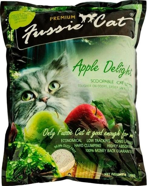 Наполнитель для кошачьих туалетов Fussie Cat мгновенно комкуется и не прилипает к лапам вашего питомца. Обладает приятным яблочным запахом, прекрасно маскирующем запах мочи.