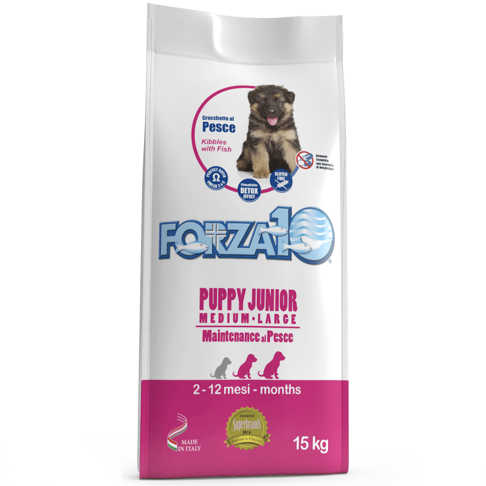 Puppy Junior из рыбы для щенков средних и крупных пород собак – корм, предназначенный для поддержания прекрасного состояния здоровья собаки, в том числе для поддержания состояние здоровья, достигнутого после применения диетических кормов ФОРЦА10 (линия Diet). Клинически доказано, что большинство домашних питомцев, питающихся кормами, для приготовления которых не используются ингредиенты промышленного производства, менее подвержены заболеваниям, которые связаны с питанием (аллергия, пищевая непереносимость и т.д.). На основе данных исследований, компания SANYpet разработала полноценную гамму диетических и повседневных кормов для собак и кошек всех пород и размеров.