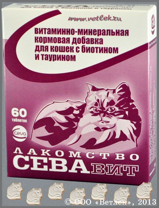 Севавит для кошек с биотином и туарином (Севавит витаминное лакомство для кошек с биотином и таурином (60таб.))