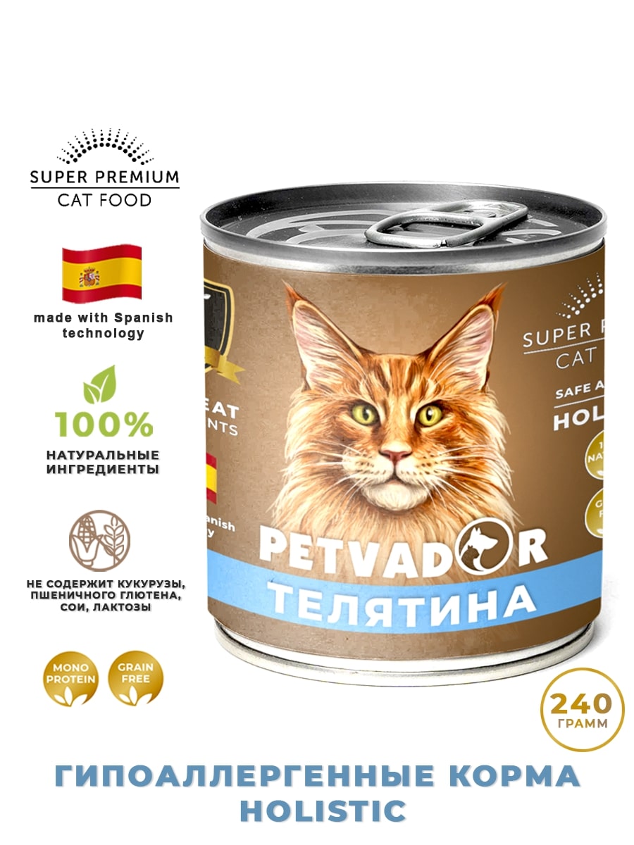 Натуральное беззерновое гипоаллергенное питание из мяса телятины и перепелки. Идеально для кошек с чувствительным пищеварением или склонных к аллергии.