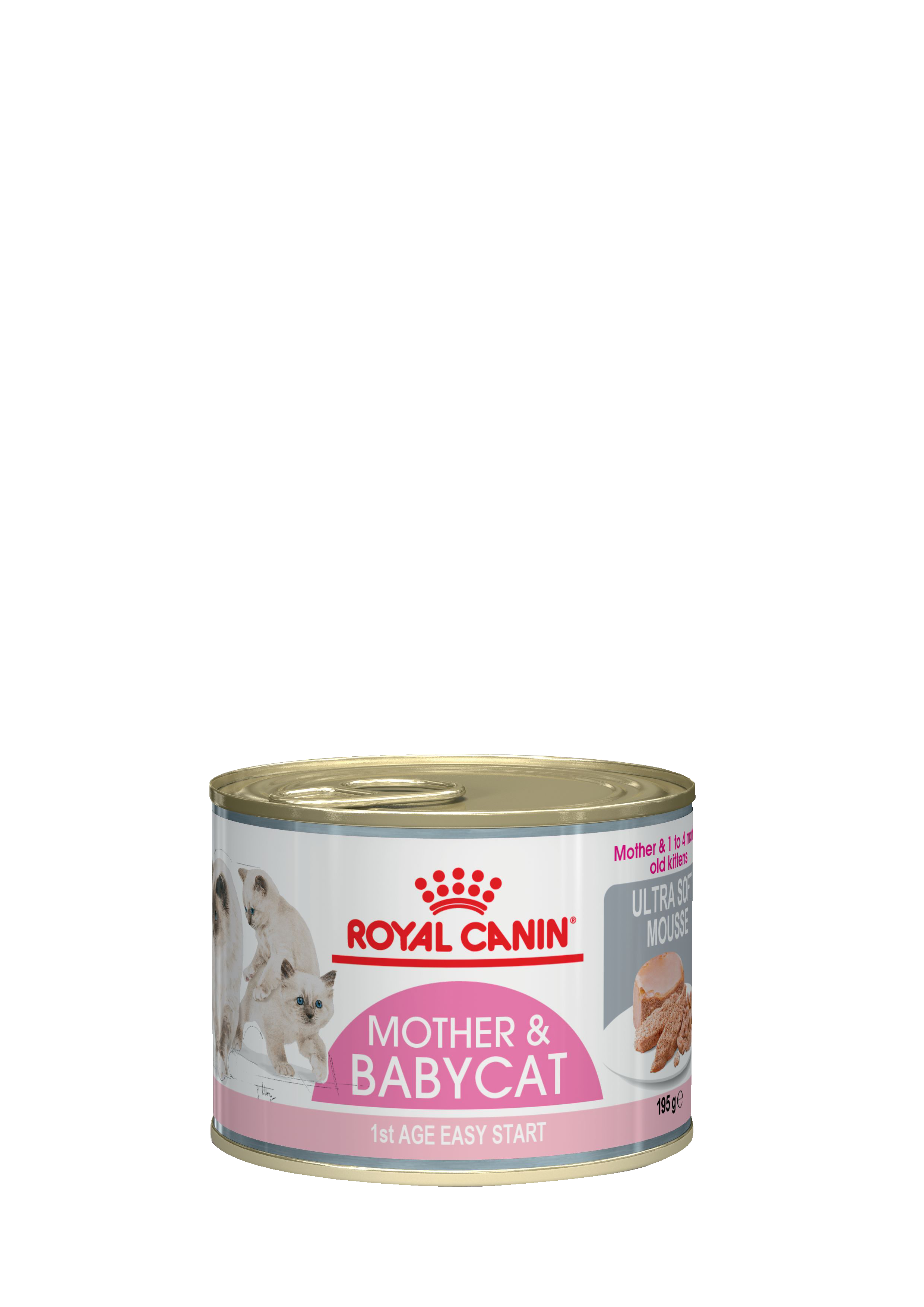 Корм консервированный полнорационный для беременных и кормящих кошек, а также для котят во время первой фазы роста (в возрасте от 1 до 4 месяцев) и в период отъёма (очень нежный мусс) Mother & Babycat (Мазер энд Бэбикет).
